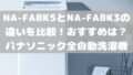 - 違いのポイント:NA-FA9K5 は洗濯時間・節水、省エネ性、運転制御、脱水性能、本体設計の改善が期待されます。一方で、NA-FA9K3 はコスト優先で選びやすいモデルという位置づけになりやすいでしょう。